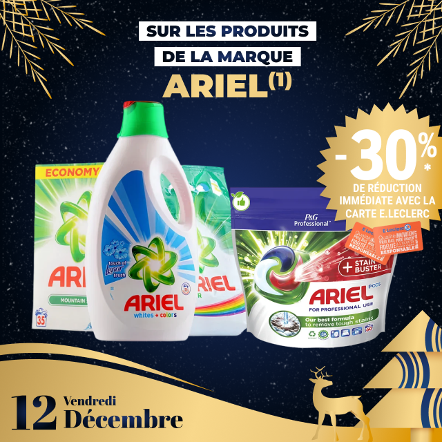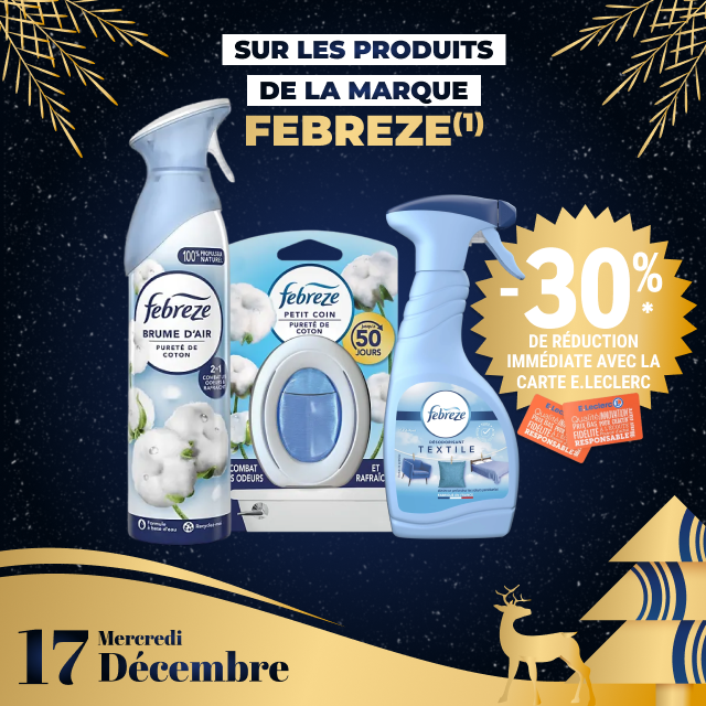 *carte 100% gratuite et disponible immédiatement. Offre non cumulable avec des produits de la même gamme bénéficiant d’une autre promotion. Bon d’achat réservé aux porteurs de la carte E.LECLERC, sur présentation en caisse de la carte E.LECLERC et valable du du 15 décembre au 31 décembre 2025, utilisable pour un montant égal ou supérieur à la valeur du bon, pour tout achats hors manège à Bijoux, Billetterie, Station service, jeux de la française des jeux et Drive. Bon non cessible, non transmissible, non remboursable, pas de rendu monnaie, valable uniquement avec la carte de fidélité afférente. Les offres bénéficiant d’un Bon d’achat E.LECLERC sont limitées à 15 produits par foyer par opération. Offre réservée à une consommation personnelle. Le magasin se réserve le droit de refuser toute demande d’une quantité supérieure aux besoins habituels généralement constatés pour une consommation personnelle. Offre interdite à la revente.
