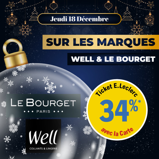 *Jeu gratuit avec obligation d’achat d’une montant minimum de 50€.Un bon d’achat de 200€ mis en jeu de 8H30 à 13H et un deuxième de 13H à 19H30. Carte 100% gratuite et disponible immédiatement. Bon d’achat réservé aux porteurs de la carte E.LECLERC, sur présentation en caisse de la carte E.LECLERC et valable du 26 Décembre au 31 Décembre 2025, utilisable pour un montant égal ou supérieur à la valeur du bon, pour tout achat hors manège à Bijoux, Billetterie, Station service, jeux de la française des jeux et Drive. Bon non cessible, non transmissible, non remboursable, pas de rendu monnaie, valable uniquement avec la carte de fidélité afférente. Règlement complet sur demande ou disponible à l’accueil de votre magasin.